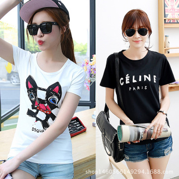 2016新款女式T恤 時(shí)尚百搭圓領(lǐng)花樣印花女短T恤 庫(kù)存批發(fā)女裝T恤 /