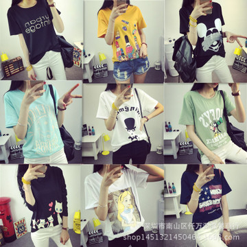 2016新款夏季女式短袖t恤打底衫女 地攤貨源女裝印花圓領(lǐng)短袖 /