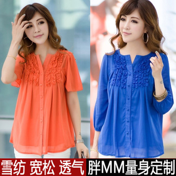 2016特大碼女裝長袖加大超大碼春裝新款雪紡衫木耳邊短袖修身襯衫 /