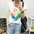 歐洲站新款韓版亮片太陽花純棉短袖t恤女夏季修身半袖 /