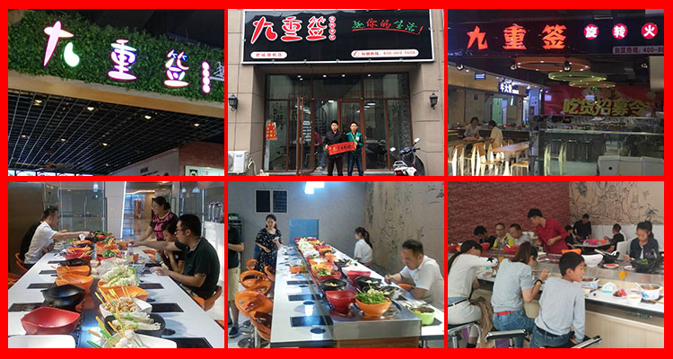 九重簽會(huì)跳舞的旋轉(zhuǎn)小火鍋,軌道式全自選百款產(chǎn)品。四季鍋底,十幾種口味,任意挑選,料包統(tǒng)一送,口味如一,自動(dòng)上餐,開店省員工,2人開店,省心來創(chuàng)業(yè)。